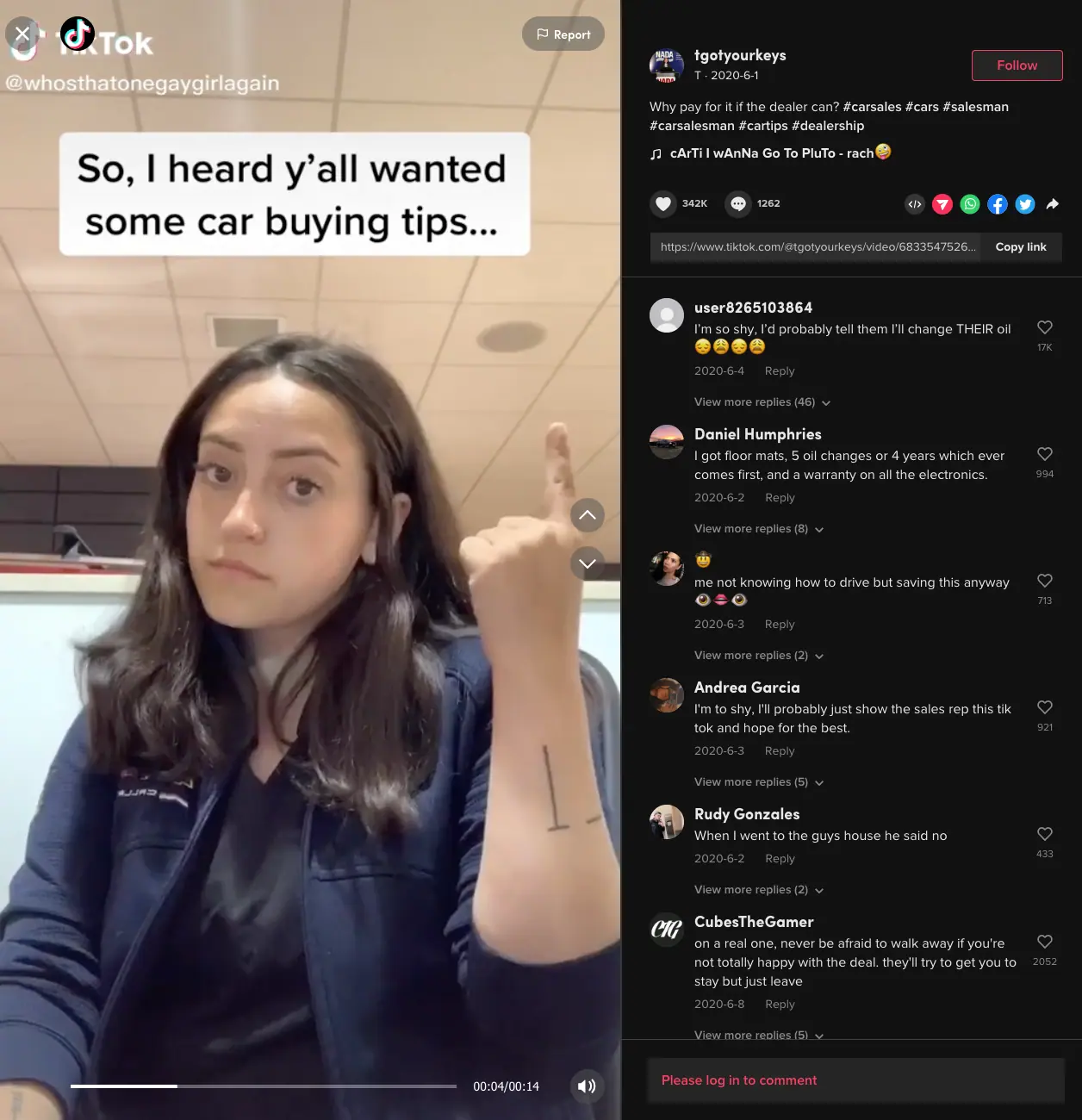 “This was the tricky part; you would think gaining the views or interactions or even going viral would be tricky, but like any recipe, if done correctly, you will be guaranteed your desired results! The secret sauce was getting my viewers to trust me and want to message me to continue the conversation. I was their “Friendly Neighborhood Car Salesman” and was there to answer any questions they had, needing nothing in return. The result? Of the many people that messaged me, I weeded out around 15 individuals around my dealership area (they knew where the store was since it was in my biography) with whom I could do business that week. I created a list of individuals I could sell that MONTH, and so on. I mined my list like any salesperson and sold 10 cars that month. Therefore, I continued selling vehicles through TikTok– because of the trustability and likeability it gave me as a car salesperson!”